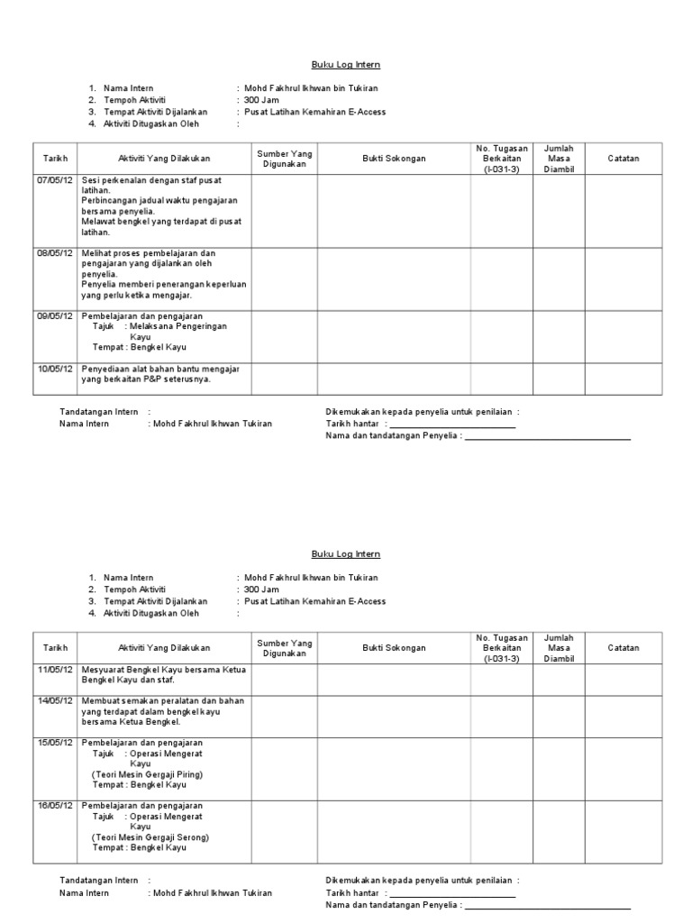 1 Laporan Catatan Harian Dan Mingguan Pdf Buku Log Log Book Latihan Industri Industrial Training Nama Pelajar Student Name No Matrik Matrix Number Course Hero
