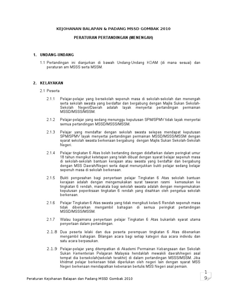 Kejohanansukanolahragamss Kinta Utara 2018 1 Peraturan Pertandingan Kejohanan Balapan Dan Padang Pdf Document