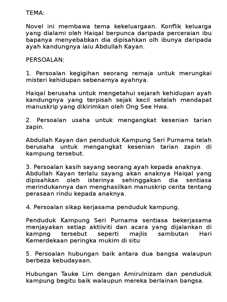 Contoh Persoalan Novel Silir Daksina Kuora G