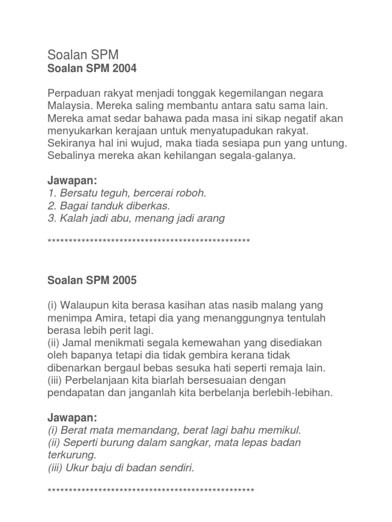 Contoh Soalan Peribahasa Spm Dan Jawapan Seluruh X Cute766
