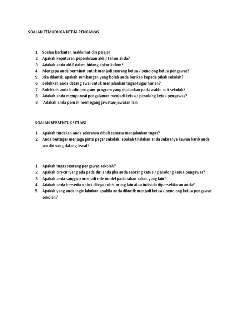 Contoh Soalan Temuduga Pengawas Sekolah Rendah Helowinm Cute766