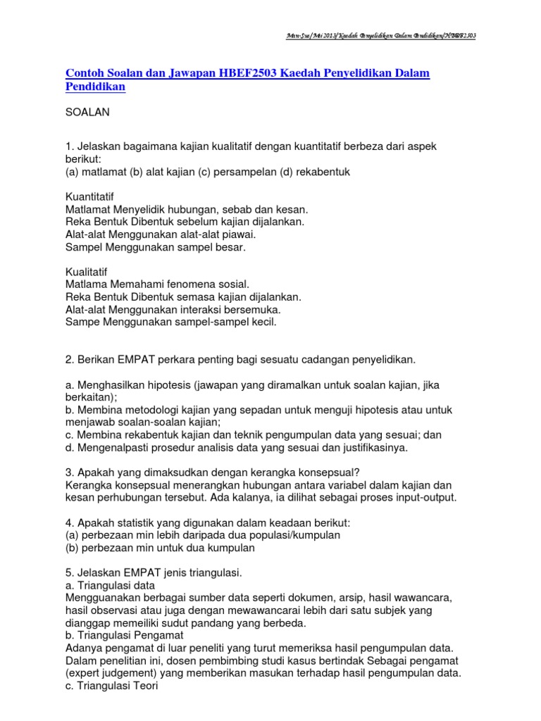Contoh Soalan Dan Jawapan Hbef2503 Kaedah Penyelidikan Dalam Pendidikan