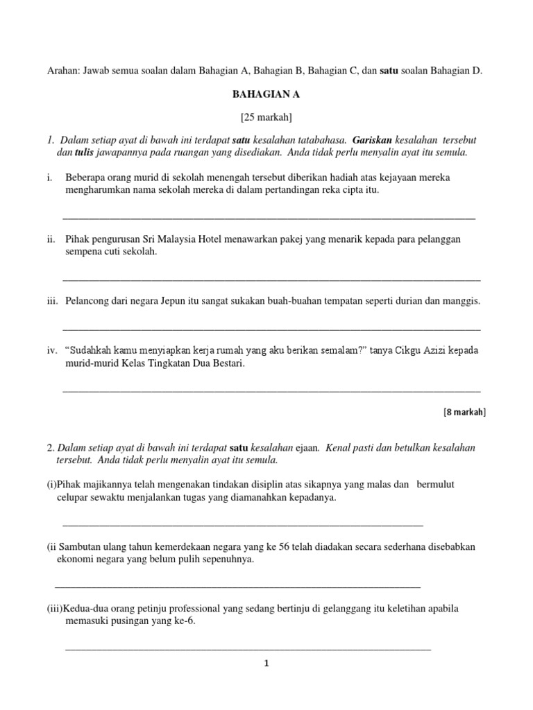 Contoh Soalan Bm Tingkatan 2 Selangor B