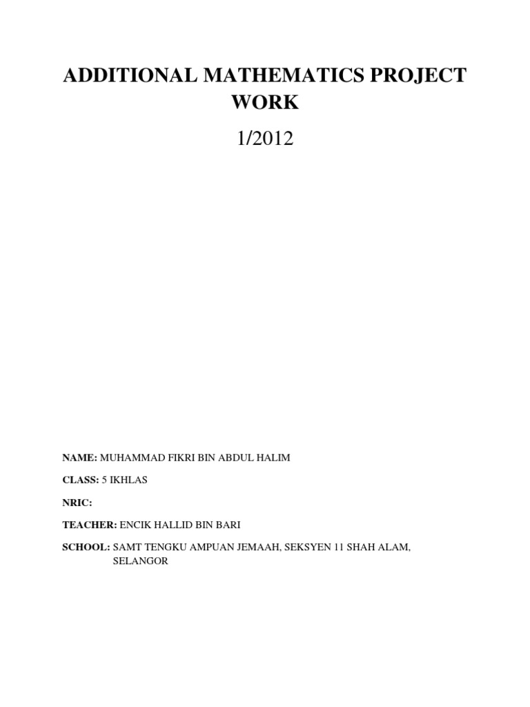 Contoh Folio Addmath 2010 Project Work 1 Cute766