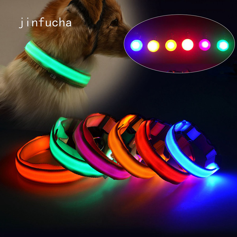 Jinfucha Nylon Led Pet Dog Collar Night Safety Flashing Glow In The Dark Dog Leash Dogs Luminous Fluorescent Collars Shopee Singapore