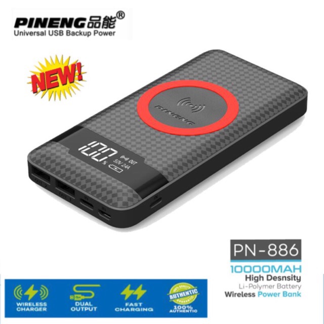 Original Pineng Pn 886 10000mah Qi Wireless Polymer Powerbank Shopee Singapore