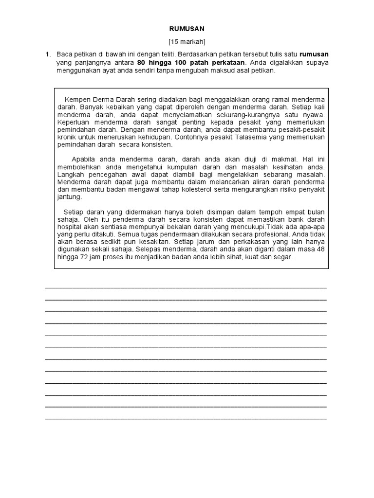 Soalan Rumusan F3 Kempen Derma Darah Docx