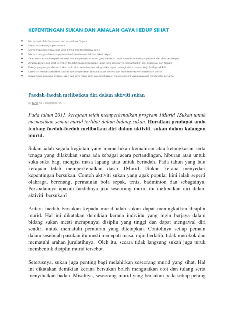 Doc Faedah Faedah Melibatkan Diri Dalam Aktiviti Sukan Abbas Harun Academia Edu