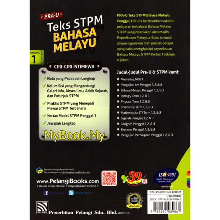 Myb Buku Pra U Teks Stpm Bahasa Melayu Penggal 1 Pelangi Shopee Singapore