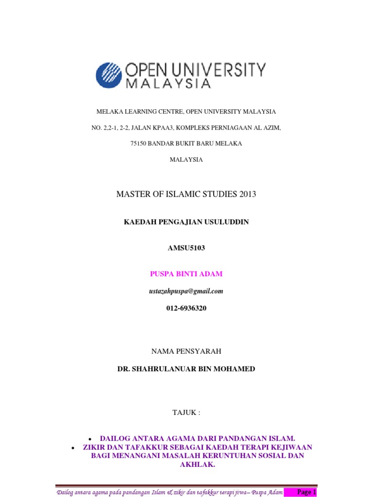 Assignment Usuluddin Dailog Zikir Terapi Jiwa