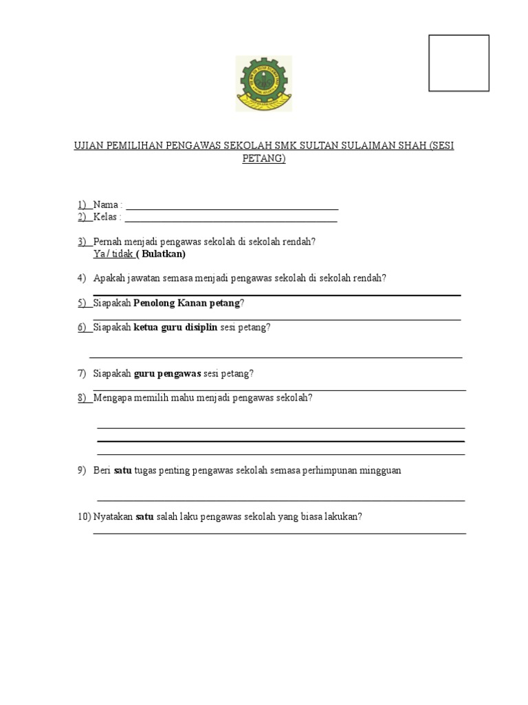 Soalan Ujian Pemilihan Pengawas Sekolah Smk Sultan Sulaiman Shah