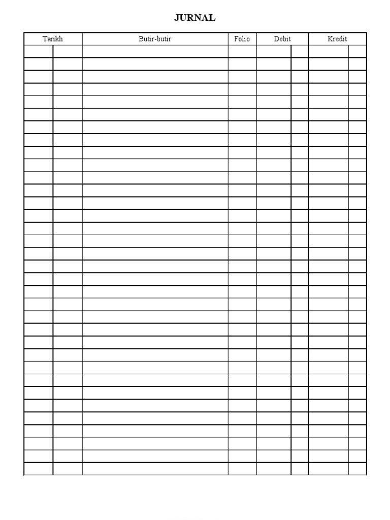 Format Buku Tunai Kosong Untuk Pelarasan