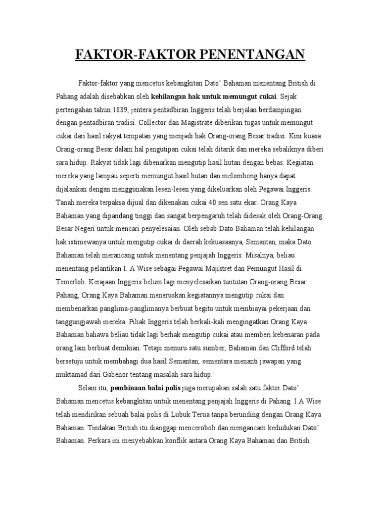 Faktor Faktor Penentangan Dato Bahaman Negeri Pahang