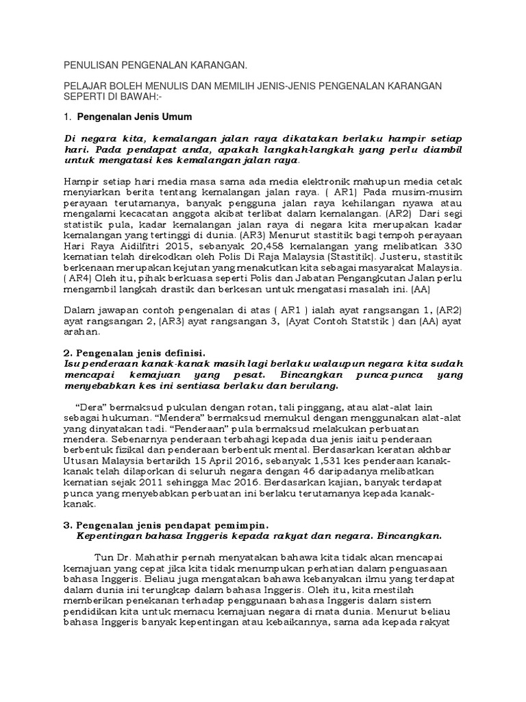 Penulisan Pengenalan Karangan Pelajar Boleh Menulis Dan Memilih Jenis Jenis Pengenalan Karangan Seperti Di Bawah