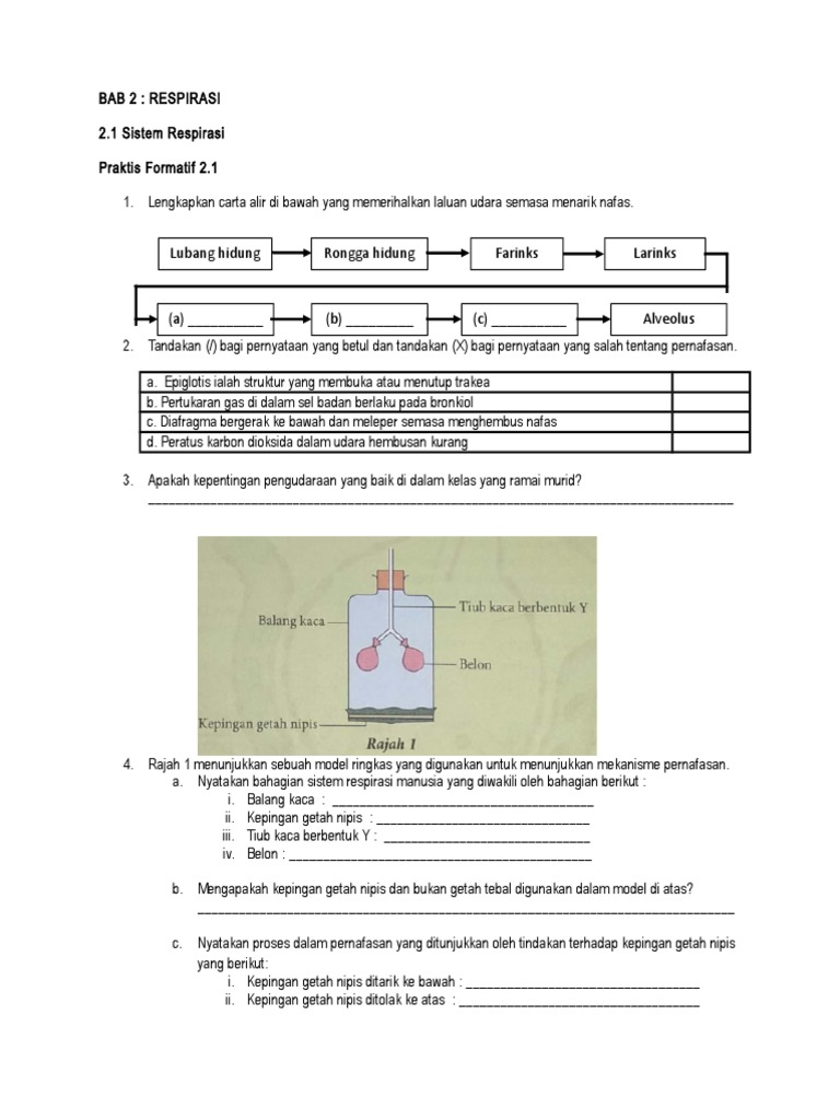 Latihan Dan Jawapan Mengenai Bab Respirasi Dan Gerak Balas