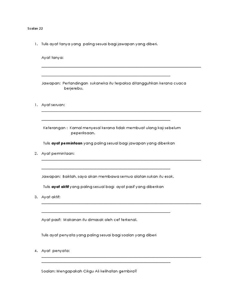 Latihan Jenis Ayat Tukar Ayat Penyata Ke Ayat Tanya
