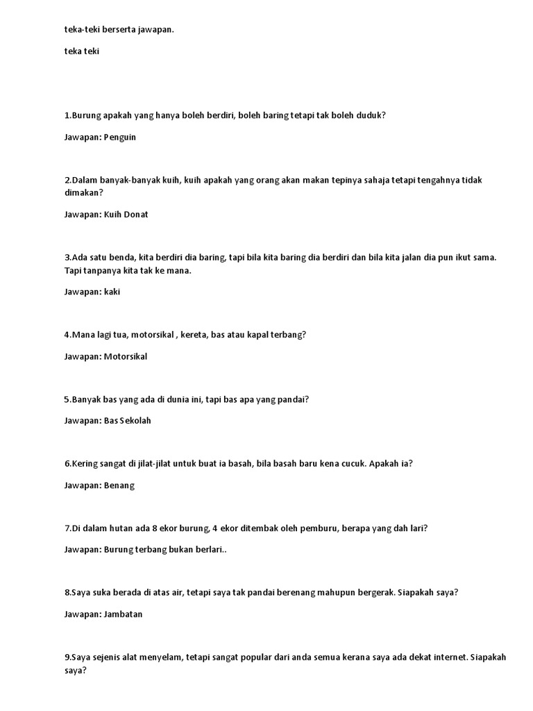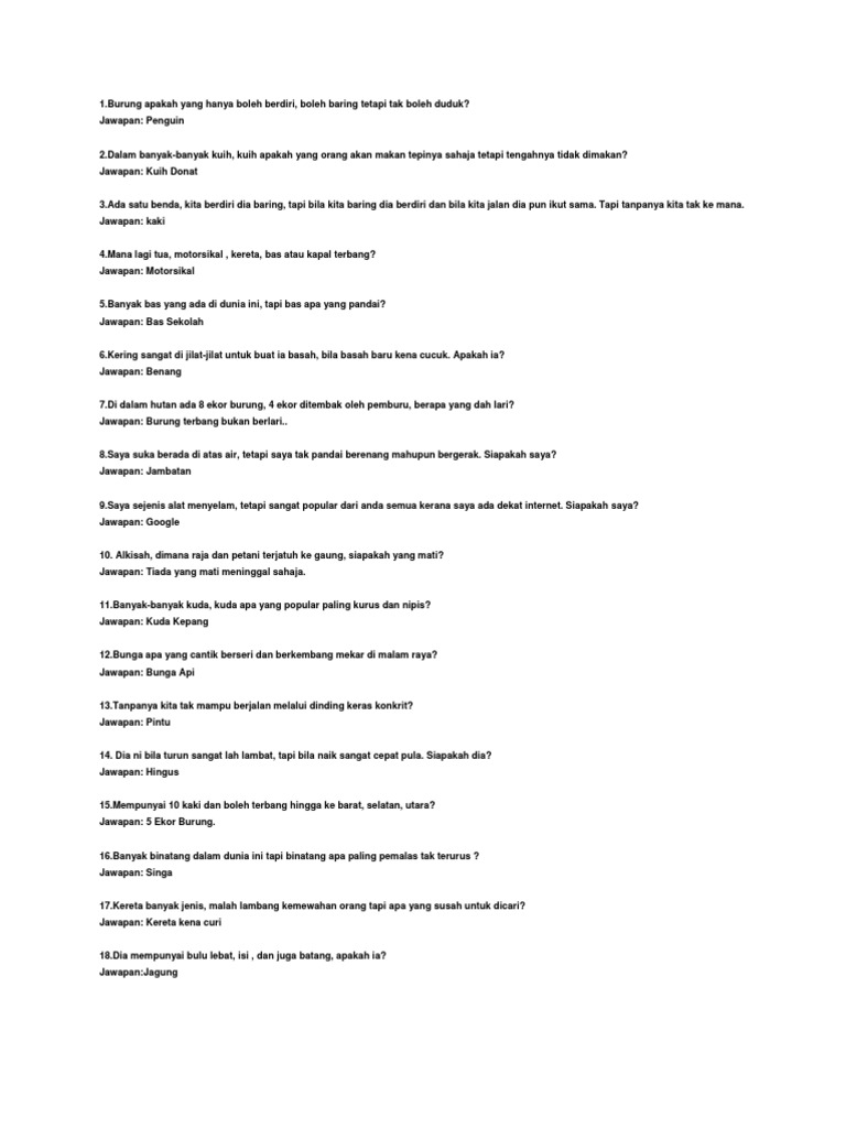 Teka Teki Berserta Jawapan Himpunan Koleksi Lawak Best