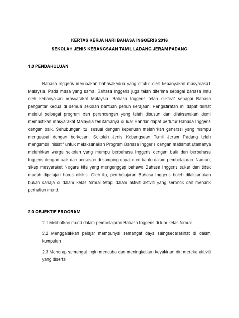 Kertas Kerja Hari Bahasa Inggeris 2016 Sekolah Jenis Kebangsaan Tamil Ladang Jeram Padang