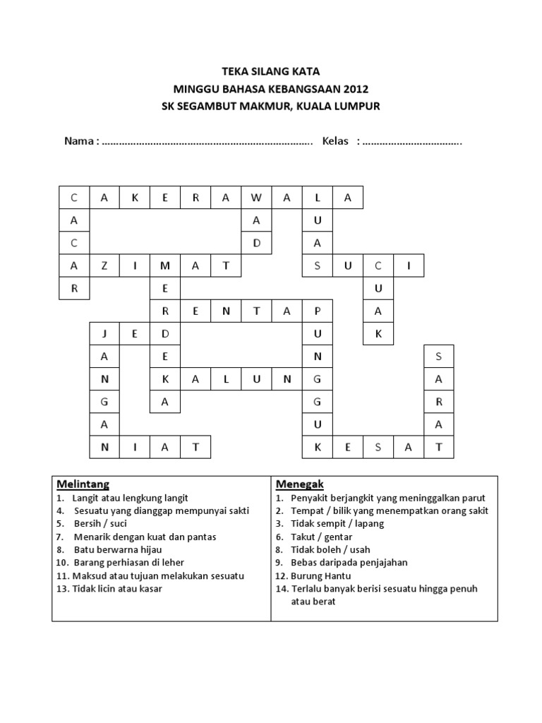 Contoh Teka Silang Kata Bahasa Melayu Berserta Jawapan Yang Sangat Terbaik Untuk Ibubapa Muat Turun Skoloh