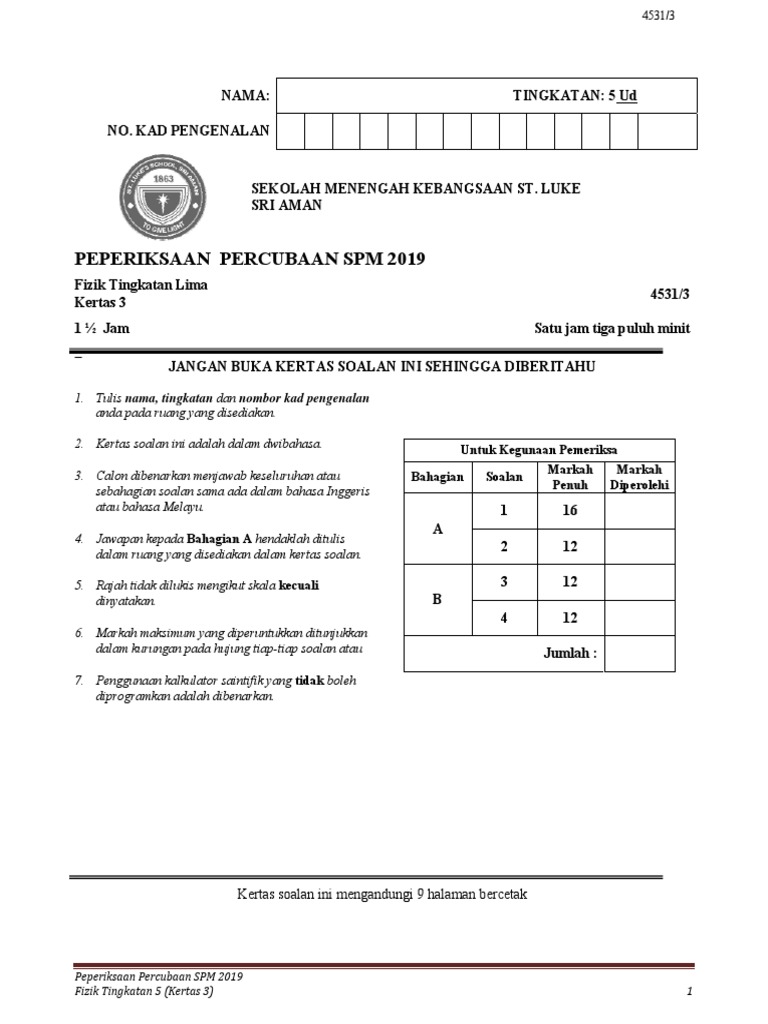 Fizik K3 Skema Trial Spm Smk St Luke Sri Aman 2019