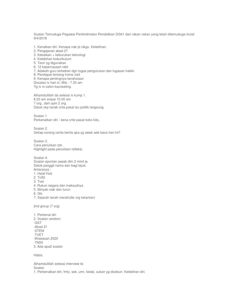 Soalan Temuduga Pegawai Perkhidmatan Pendidikan Dg41