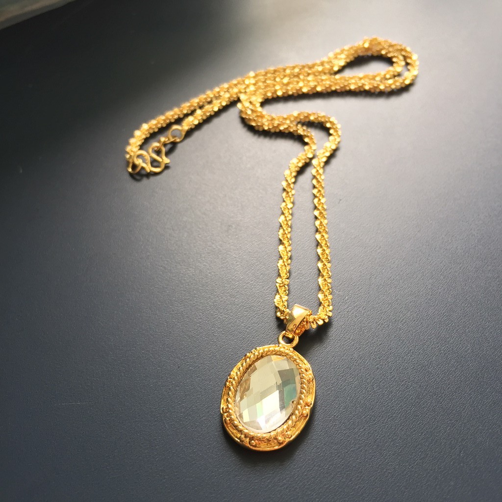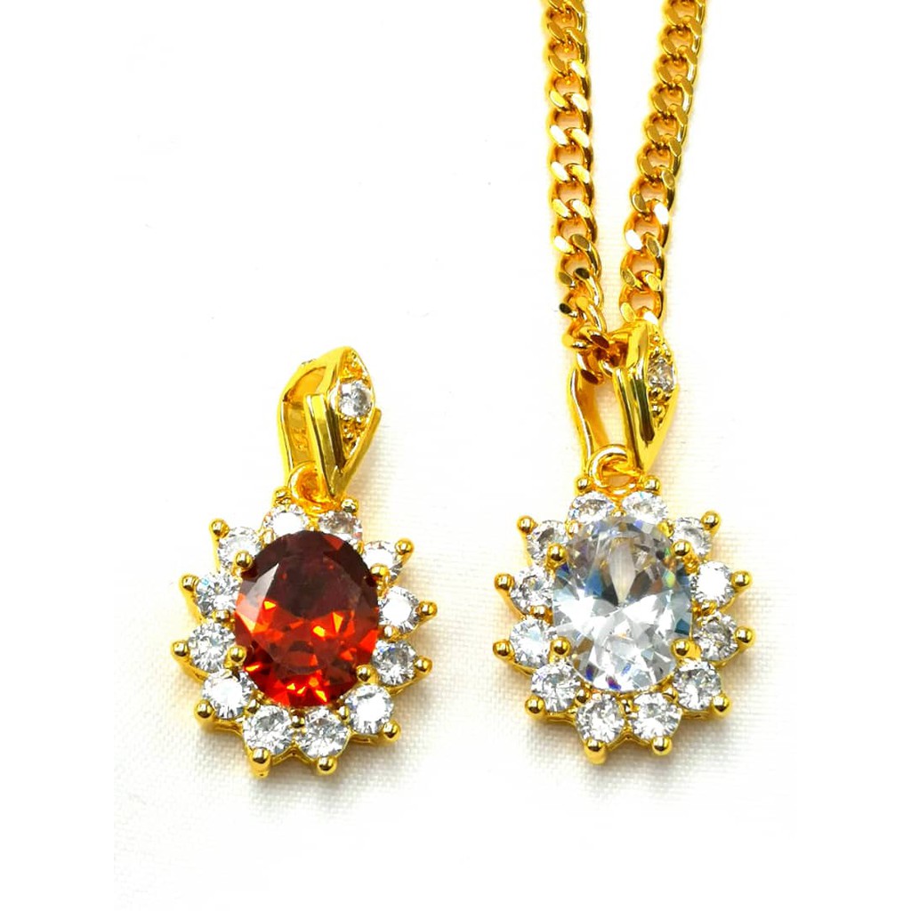 Rantai Leher Loket Batu Emas Korea 999 Gold Plated Big Diamond Pendant Necklace Shopee Singapore