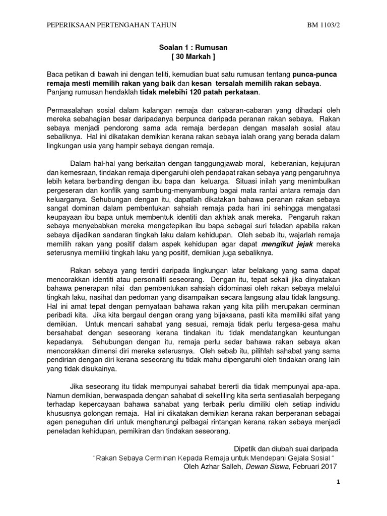 Rumusan Peranan Rakan Sebaya Dalam Kehidupan Contoh Jawapan