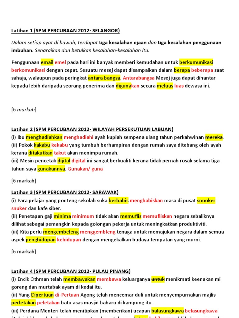 Soalan Ramalan Spm 2012 Kesalahan Ejaan Imbuhan