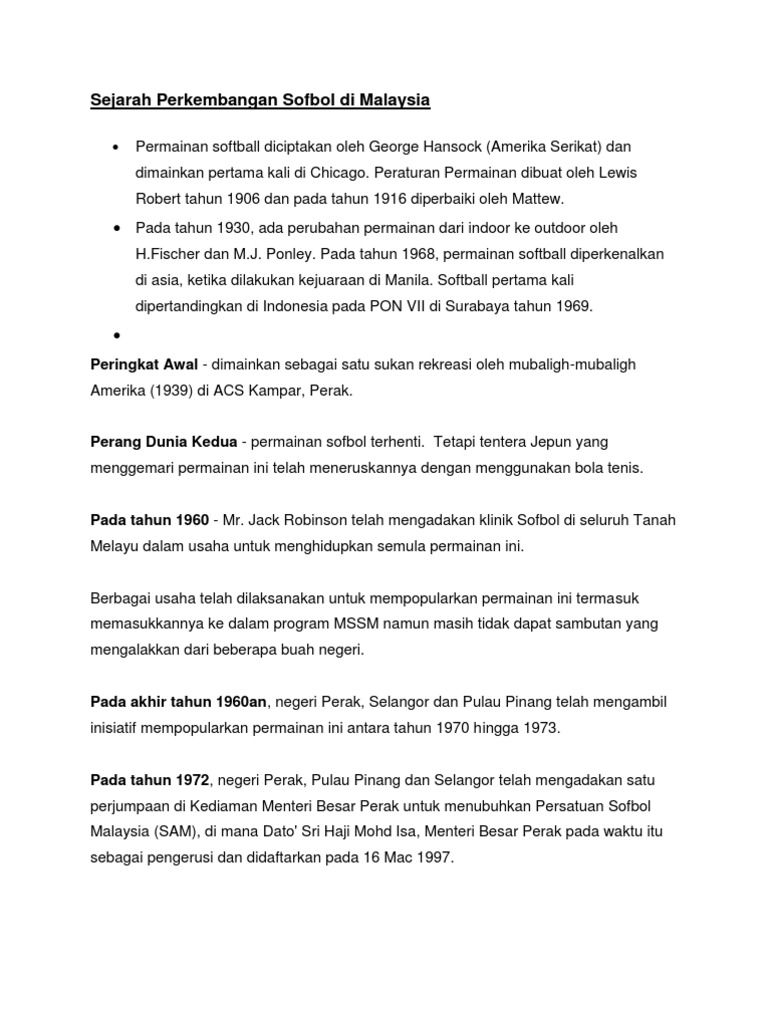 Sejarah Perkembangan Sofbol Di Malaysia