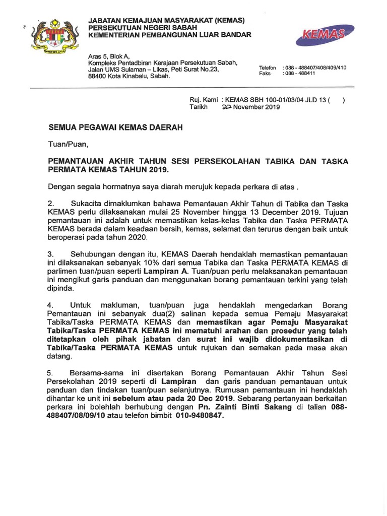 Buku Kedatangan Taska Tabika Kemas 20 1 9