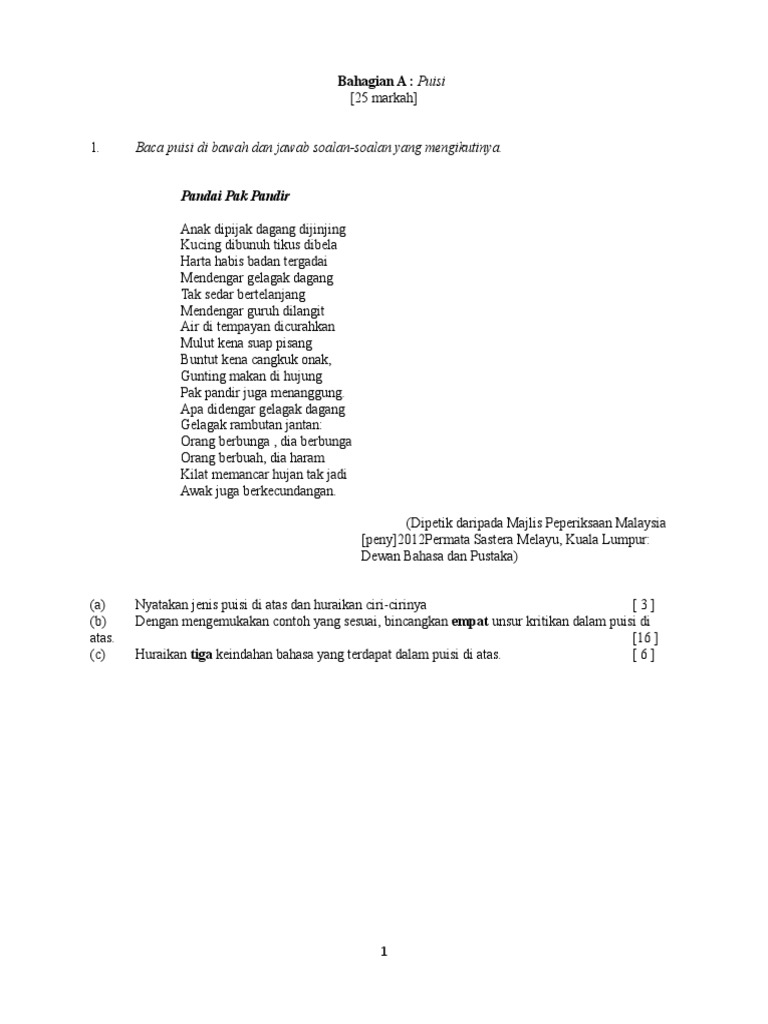 Contoh Jawapan Sastera Stpm Penggal 1