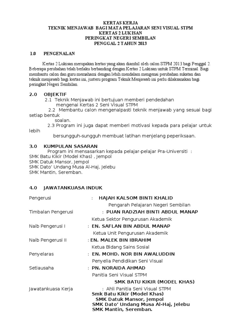 Kertas Kerja Teknik Menjawab Kertas 2 Lukisan Penggal 2