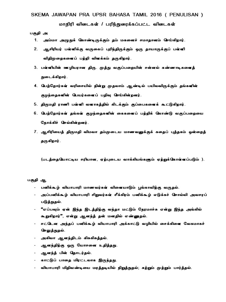 Jawapan Bahasa Tamil Upsr