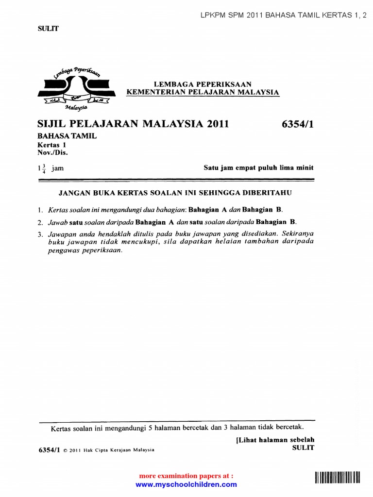 Lpkpm Spm 2011 Bahasa Tamil Kertas 1 2 1