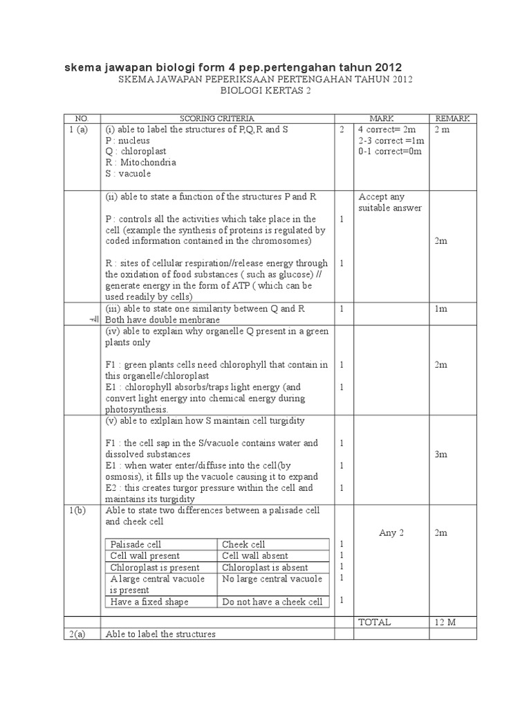 Skema Jawapan Peperiksaan Pertengahan Tahun 2012 Bio Osmosis Vacuole
