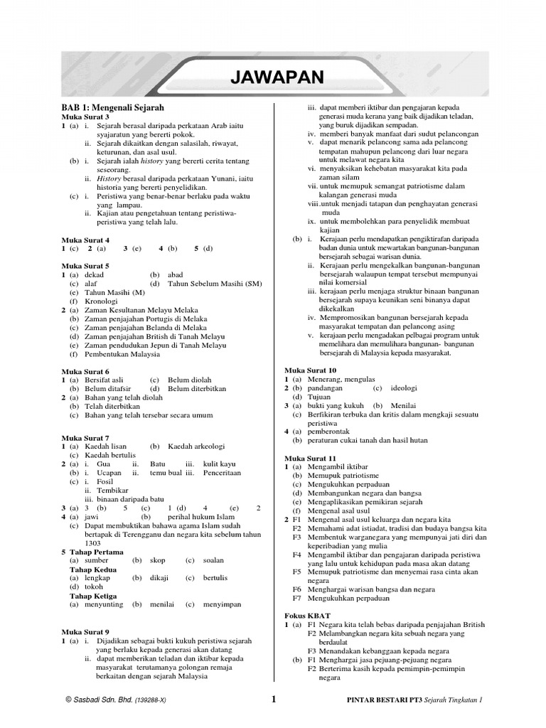 Jawapan Modul Aktiviti Pintar Bestari Sejarah Tingkatan 1