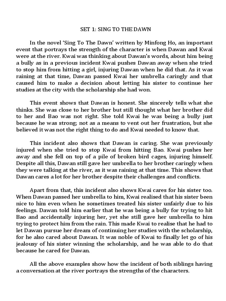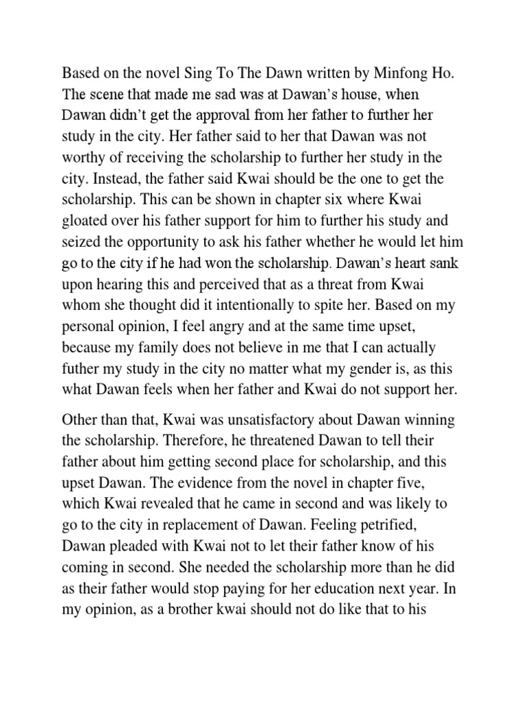 Spm Novel Sing To The Dawn Sample Answer A Character You Sympathise With