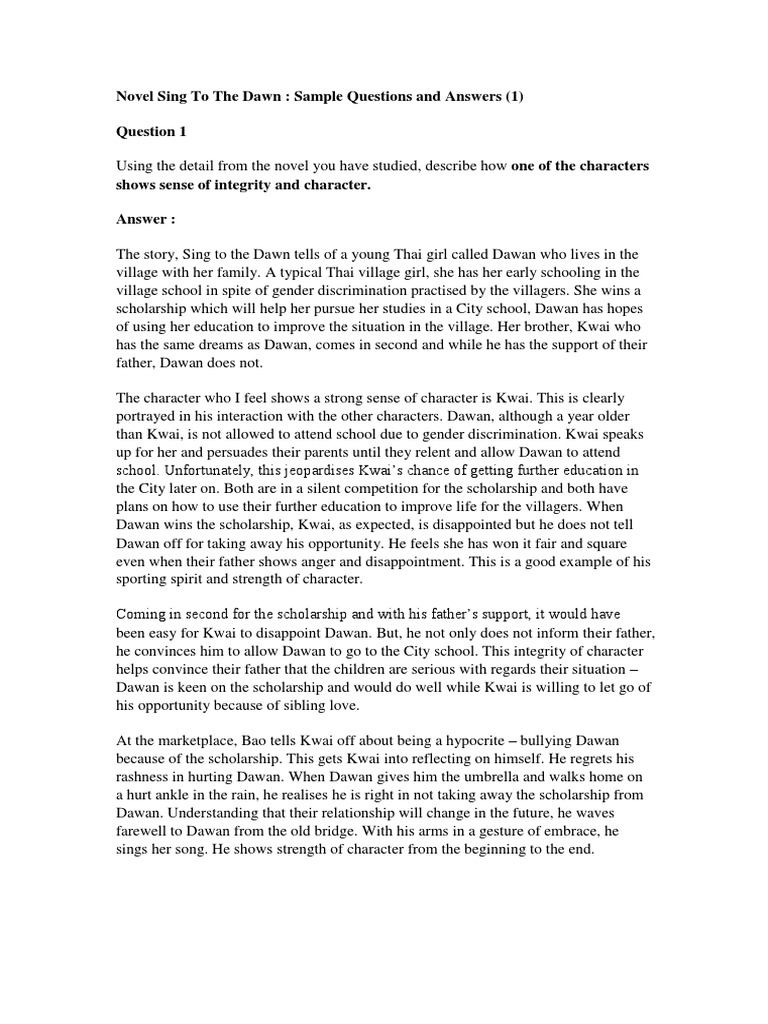 Novel Sing To The Dawn Sample Questions And Answers 4