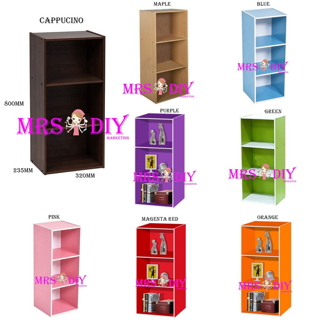 Rak Buku Viral 3 Compartment Utility Shelf Colour Box Shopee Malaysia