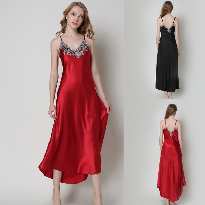 Plus Size Nightgown For Ladies Lace Satin Sleepwear Silk Nighty Sleeping Dress Sleece Bathrobe Sexy White Red Black Sleepshirts Onshopdeals Com