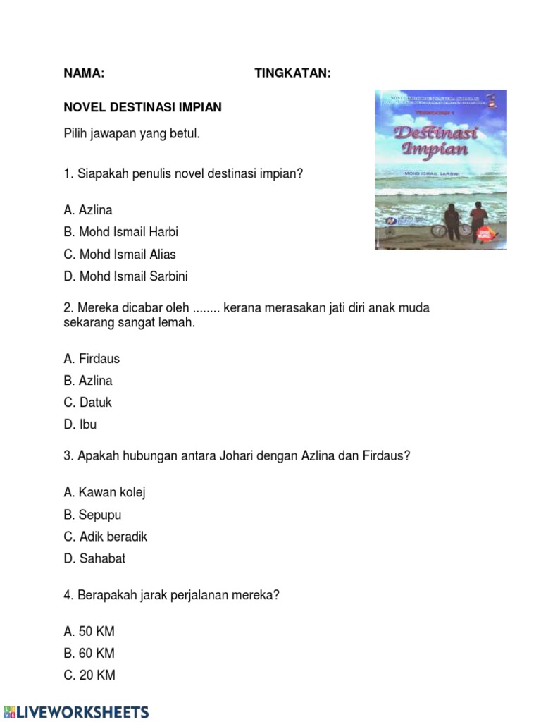 Novel Tingkatan 1 Destinasi Impian Kupasan Novel Laman Komsas Antologi Dan Novel Terkini