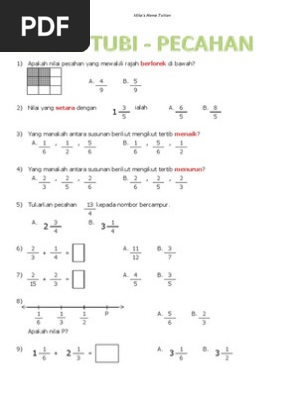 Contoh Soalan Matematik Pecahan Tahun 5 Beserta Jawapan