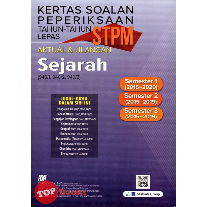 Topbooks Sasbadi Kertas Soalan Peperiksaan Tahun Tahun Lepas Stpm Sejarah Semester 1 2 3 Aktual Ulangan Shopee Malaysia