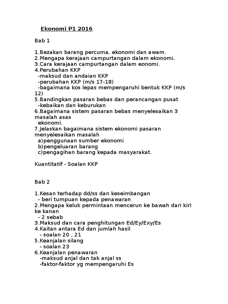 Soalan Sebenar Ekonomi P1 2016