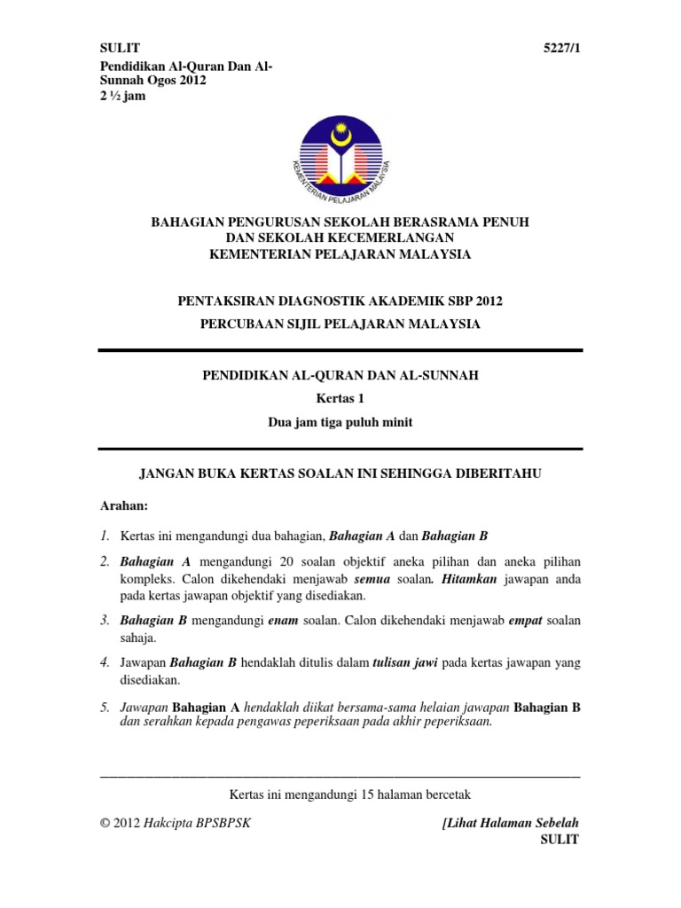 5227 Kertas 1 Pendidikan Al Quran Dan Al Sunnah