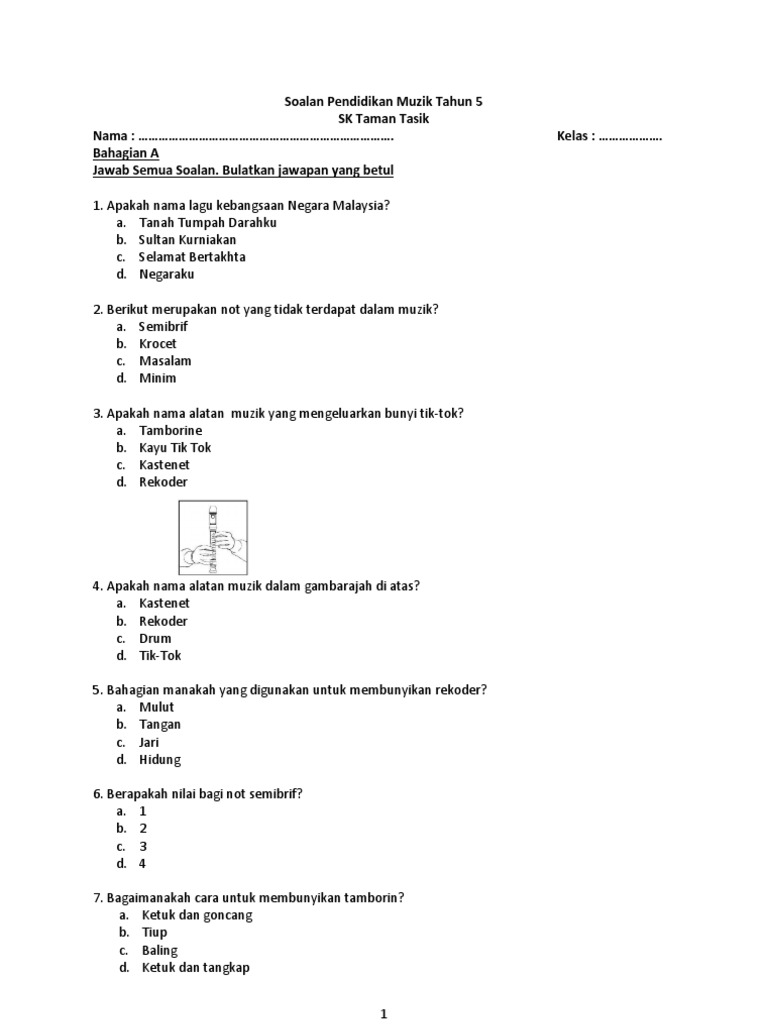 Ujian Akhir Tahun Pendidikan Muzik Tahun 5 Kssr Sumber Pendidikan