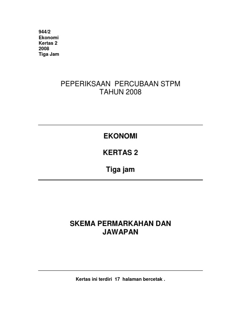 Skema Jawapan Stpm Trial 2010 Ekonomi 1 Terengganu Pdf Document