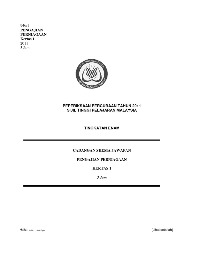Percubaan Stpm Pahang 2011 Skema Pengajian Perniagaan Kertas 1